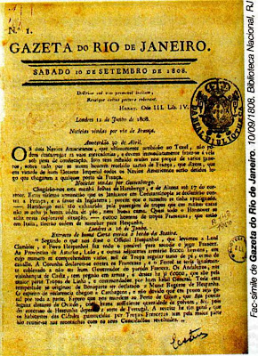 Reprodução do primeiro número do jornal A Gazeta do Rio de Janeiro, publicado em 10 de Setembro de 1808.