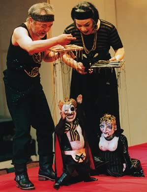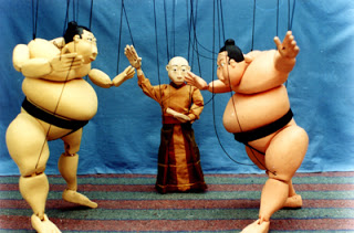 Na era clássica os fantoches estavam dispostos principalmente dentro dos templos; eram bonecos de grande porte conduzidos igualmente durante as procissões de iniciação. Eles se desenvolvem particularmente a partir do século VII, com a adoção de estátuas semelhantes ao Homem. Estes fantoches que imitam as feições humanas são então escolhidos cada vez mais para estes eventos religiosos, assumindo um estilo que ainda hoje marca as representações do teatro de fantoches.